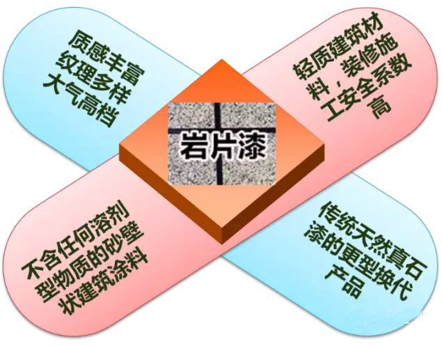 巖片漆,也叫仿花崗石漆、花崗巖石漆,是不含任何溶劑型物質(zhì)的砂壁狀建筑涂料,是傳統(tǒng)天然真石漆的升級換代品種。