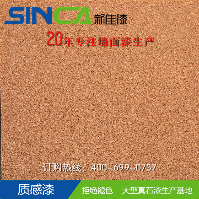 新佳質(zhì)感漆以其變化無窮的立體化紋理,多選擇的個性搭配,發(fā)展獨特的空間視角,豐富生動,耳目一新,這種新型的藝術(shù)漆,可代替墻紙,經(jīng)濟、環(huán)保、個性。通過不同的施工工藝,工具,在墻上塑造不同的造型和圖案。質(zhì)感漆由天然純白彩砂、乳液、助劑、及有機顏料將液料加入色漿調(diào)制,其色彩比天然真石漆多樣化。