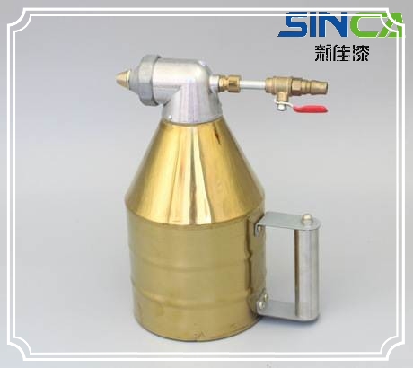 1.噴槍 噴槍口徑選擇。一般有4、6、8MM,細(xì)砂用4MM,中砂和粗砂分別用6MM、8MM。噴涂要根據(jù)漏斗里真石漆的多少來匹配出氣量的多少,一般來說氣壓調(diào)節(jié)控制在0.05-0.1Mpa最好